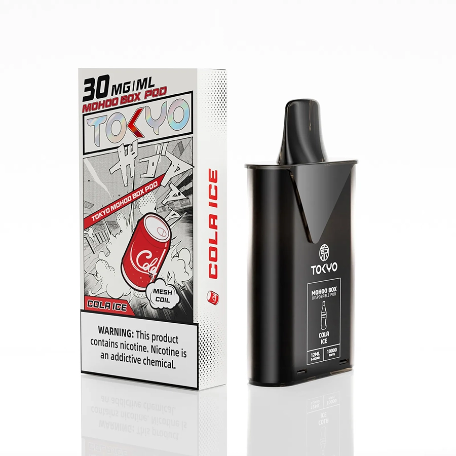 東京魔盒電子煙煙彈採用植物甘油與丙二醇基底,搭配高純度尼古丁鹽,容量 12mL、尼古丁強度 30mg/mL(3%),內建 1.0Ω 鋼網棉霧化芯,設計為一次性 pod,約可在 10,000 口,吸力持久穩定。